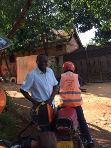 As you might have already guessed we were successful in sorting my communication problems and at no expense which was a miracle in itself! Then it was time to head home, but how??? Riding a motorbike taxi through Kampala city centre was not on my agenda especially as my helmet is in Jinja. But, needs must and I did feel more than a bit frazzled! Godfrey found two licensed bodas (I thought they didn’t exist in Uganda!) which covered the demands of my travel insurance as long as I was the only passenger and the bike was under 125cc. The boda drivers wore individually numbered orange helmets and high vis jackets and we were provided with helmets too! Even more impressive were the ‘hairnets’ we were given to wear under the helmets for hygiene purposes!