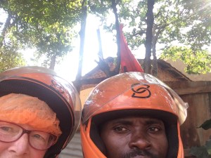 No, I’m not setting a new trend with orange hair! It’s the luxurious, actually very sensible, hair net that keeps all those using the helmet after me from ending up with any of my grey Mzungu hair! Ha ha! Actually, a great idea!