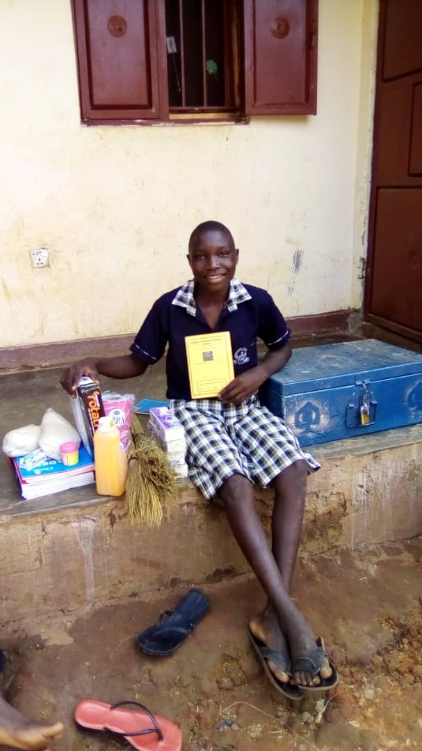 One more photo, this time of Nico sat with his ‘requirements’ – a metal case containing probably not a lot! Maybe a PE kit, a change of his old clothes for doing chores, tooth brush and paste, and hopefully his dominoes!Beside him are items some to put in communal stock, a ream if paper for the office, loads soap for washing himself and his clothes, brooms, sugar, TP (toilet paper), ‘vaseline’ to keep his skin from cracking making him vulnerable to infections, and looks like some orange juice.