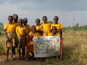 I am sat in Gerry’s Square in the shade of one of the mango trees. All I can hear is the odd goat bleating, chicken clucking, the soft voices of the neighbours and bees busy in and out of the flowers around me. Today is my day of rest and relaxation, recovering from a very long, hot, tiring day but also a very happy, exuberant occasion yesterday of Eric & Fahima’s Introduction. As usual the day included a couple of ‘challenges’ for me! It started early as Alex was due to pick us up at 8. I had prepared my bags the night before with all Mzungu like me needs for such an occasion. I had charged up the cameras, got sun cream, baby wipes, hand steriliser, first aid kit (including the one with sterile epidermic needles in case of emergency!), snack bars (as I can’t go for hours without sustenance!), lots of bottled water, my wedding invitation and gift, and many more ‘just in case’ essentials together, in my rucksack. I had also included my mosquito repellent and torch in case we got stranded overnight as has happened to me before! My added ‘essential’ was my camping stool which, when you remove a flap of material and add a biodegradable bag, becomes a toilet! Since my knees got bad I am unable to get down to use the long drop latrines or if I do manage to get down I get stuck which is both painful and embarrassing!