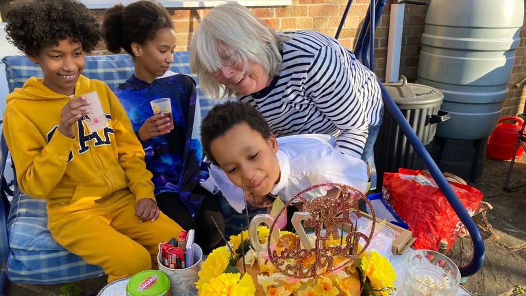 More special visitors, my Ugandan friend Moureen and her lovely family. Jeremy ‘ helped’ me with my turn at Scrabble!! He also delighted in seeing the cake, he loves cake!!