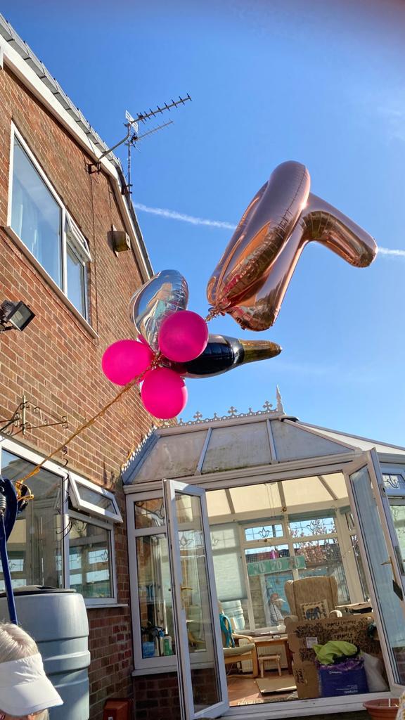 A family meal at the Farmers – Nicola & Sara had got the day off work so a wonderful surprise. I had an interesting walk home with my enormous balloons!